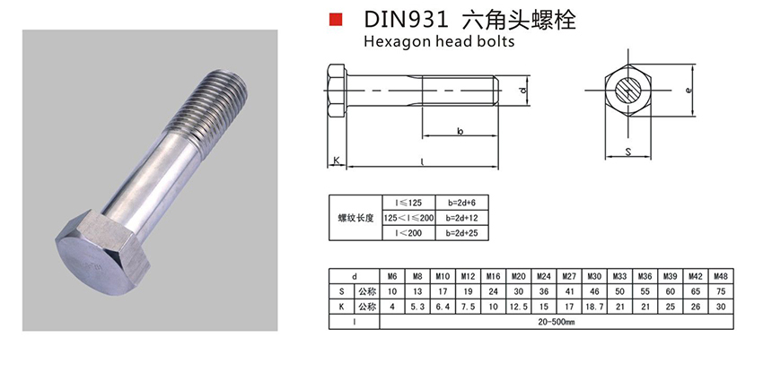 "HEX BOLT" WITH HALF THREAD DIN931 STANDARD |
